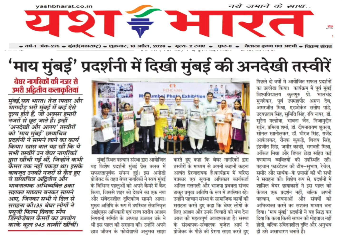 बेघर नागरिकों की नजर से उभरी अद्वितीय कलाकतियां प्रदर्शनी में शामिल बेघर छायाकारों ने इस पहल को कवल एक प्रदर्शन नहीं, बल्कि अपनी पहचान, भावनाआं और संघर्षों का अभिव्यक्त करने का सशक्त माध्यम बना दिया। “‘माय मंबईं’ प्रदर्शनी ने यह सिद्ध कर दिया कि कला किसी साधन की मोहताज नहीं होती. बल्कि संवेदनशील दष्टि और अनभव हां उस असाधारण बनात है।